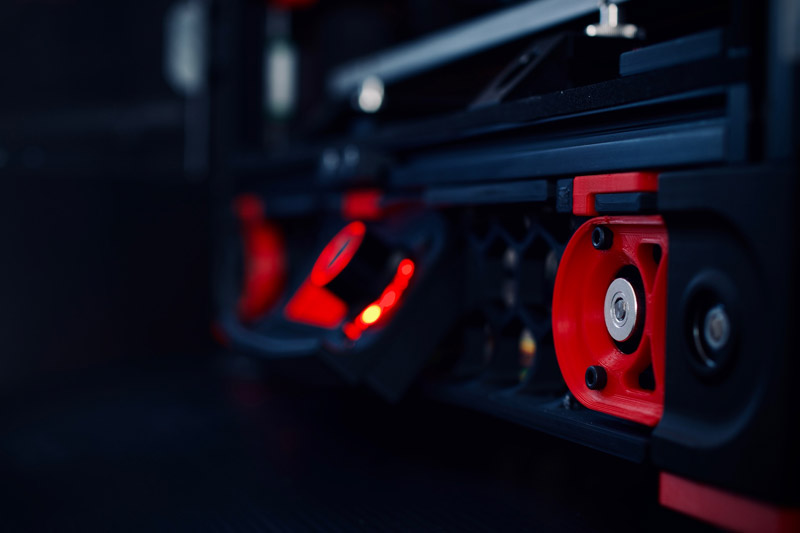 O sistema CoreXY é combinado com um leito fixo, eliminando vibrações e garantindo estabilidade. Essa configuração permite imprimir peças grandes com excelente precisão e qualidade.